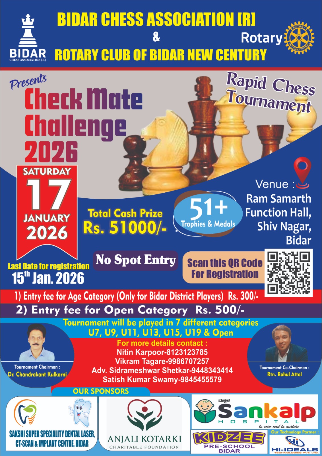 Our Vision : To create a strong chess culture in Bidar and Karnataka.
